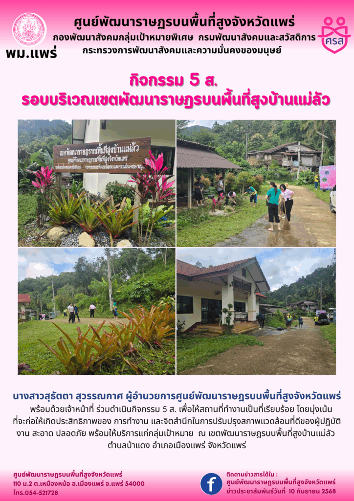 กิจกรรม 5 ส. รอบบริเวณเขตพัฒนาราษฎรบนพื้นที่สูงบ้านแม่ลัว Posted on 10 กันยายน, 20255 พฤศจิกายน, 2025 by admin